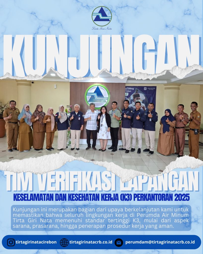 Hari ini, Selasa, 21 Oktober 2025 menjadi hari penting bagi kami. Perumda Air Minum Tirta Giri Nata Kota Cirebon dengan bangga menjalani proses Verifikasi Lapangan dari Dinas Kesehatan Provinsi Jawa Barat.