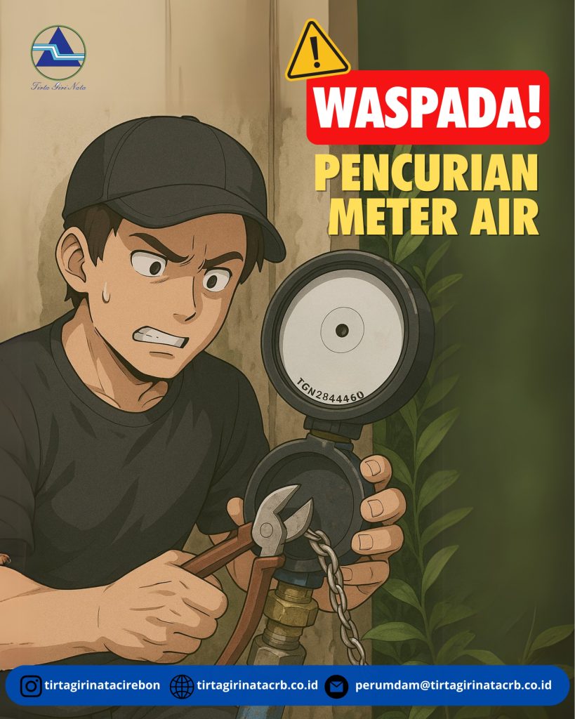 Kami mengimbau agar senantiasa waspada terhadap potensi pencurian meter air di lingkungan tempat tinggal Anda.